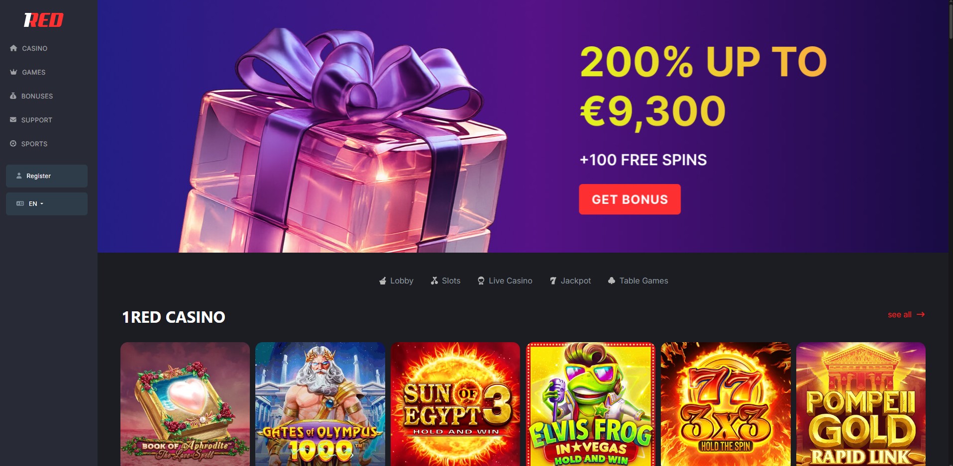 1Red Casino Review – 200% Up to €9,300 + 100 Free Spins