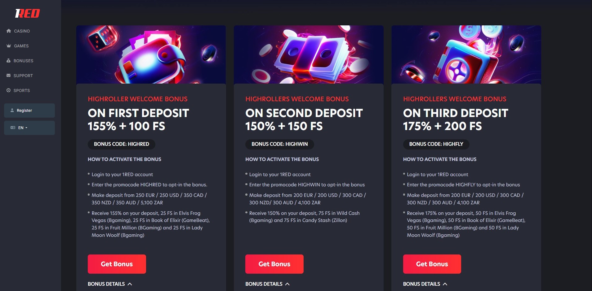 1Red Casino Promo Codes