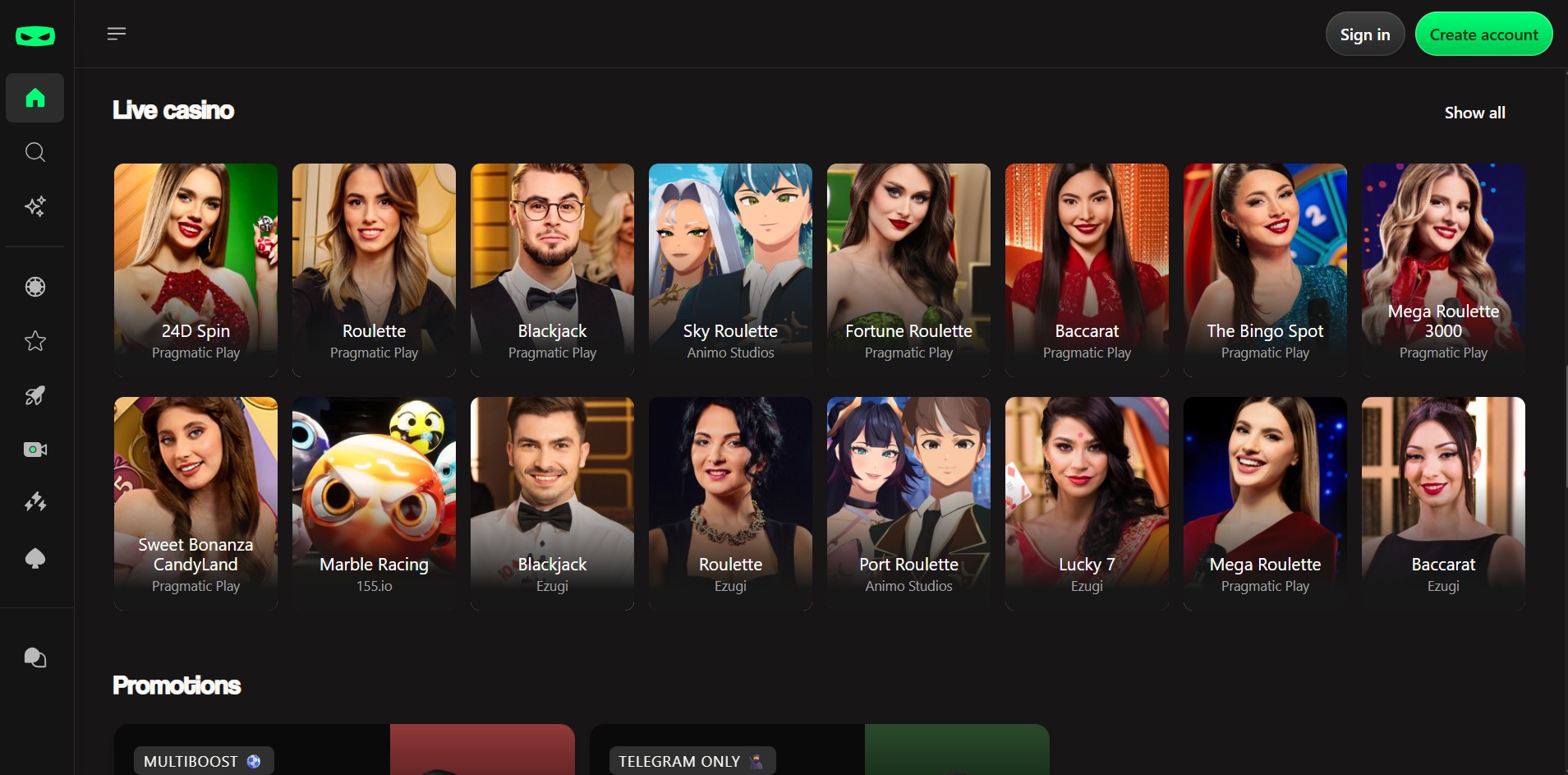 First impressions matter. When you first land on the homepage, the design philosophy is clear: speed over clutter. The dark-themed aesthetic is easy on the eyes, particularly for evening gaming sessions, and the neon accents give it a modern, energetic feel.