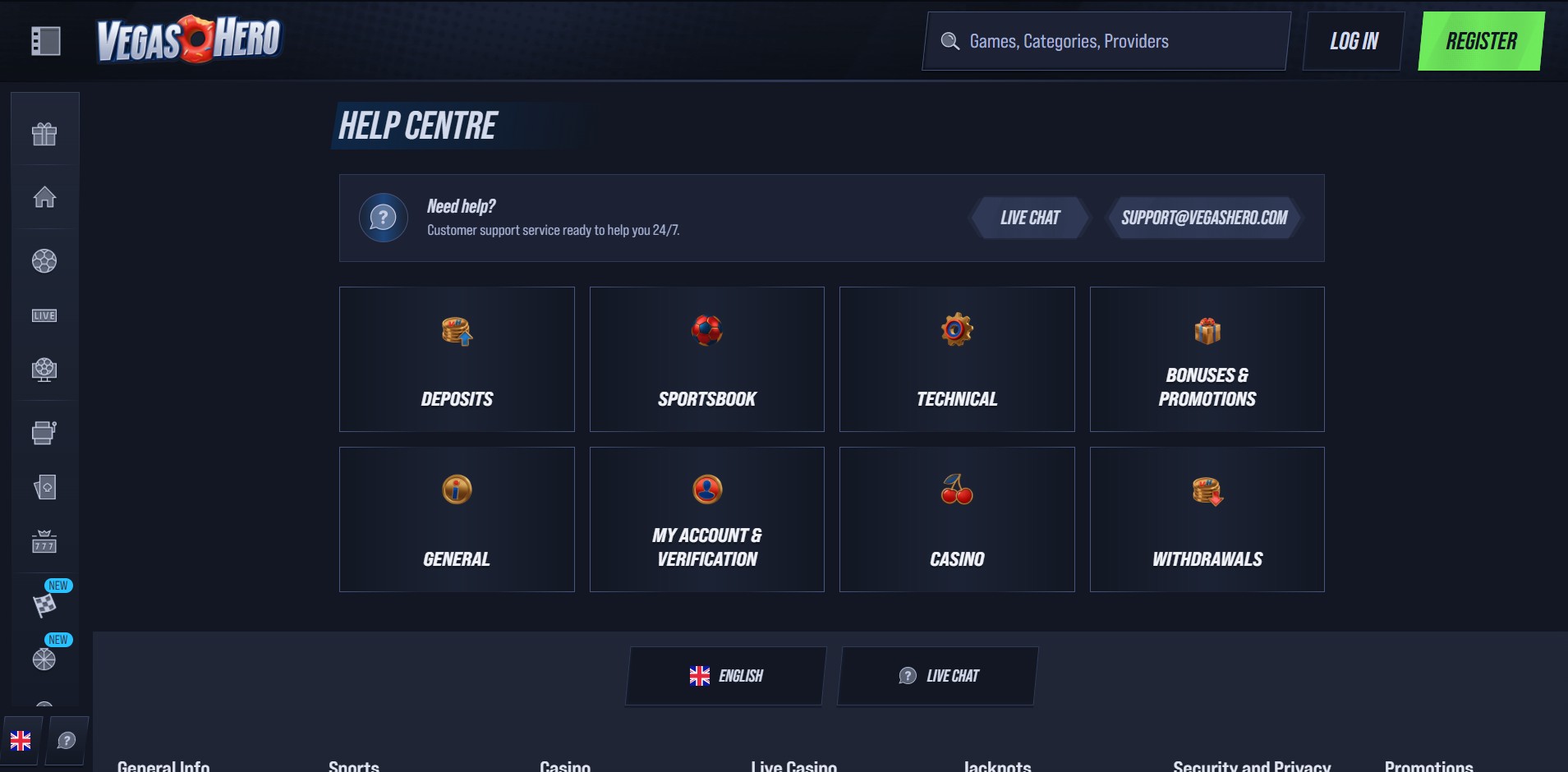 Even superheroes need backup sometimes. Vegas Hero offers a comprehensive customer support suite. The primary point of contact is the Live Chat feature, available from 9:00 AM to 1:00 AM daily. While 24/7 coverage would be ideal, the hours cover the peak gaming times for the vast majority of UK players. Outside of these hours, players can use email support or a dedicated UK freephone number.